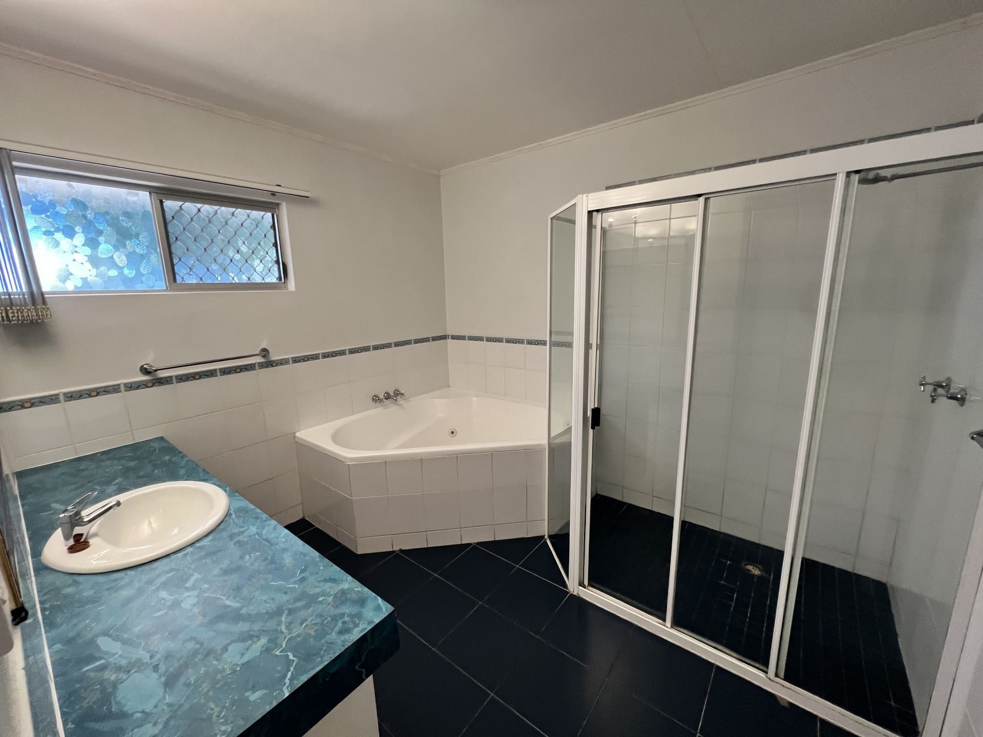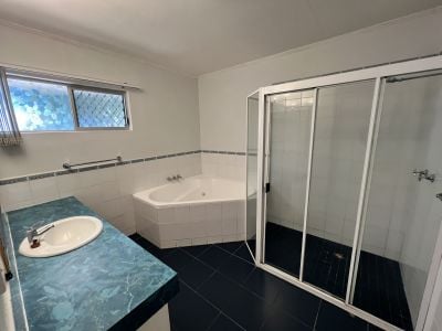 The house is so cleverly divided with one end containing the large master suite with a huge en suite and massive walk in robe and a very large bedroom with split system air conditioning. Two other carpeted bedrooms with built-ins and split system air conditioning plus huge main bathroom with massive shower recess and separate spa bath and separate toilet.