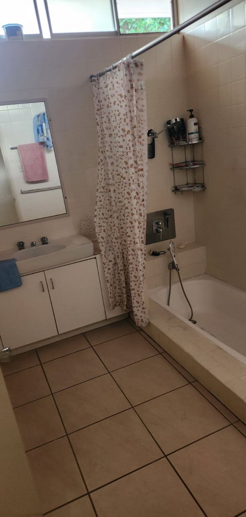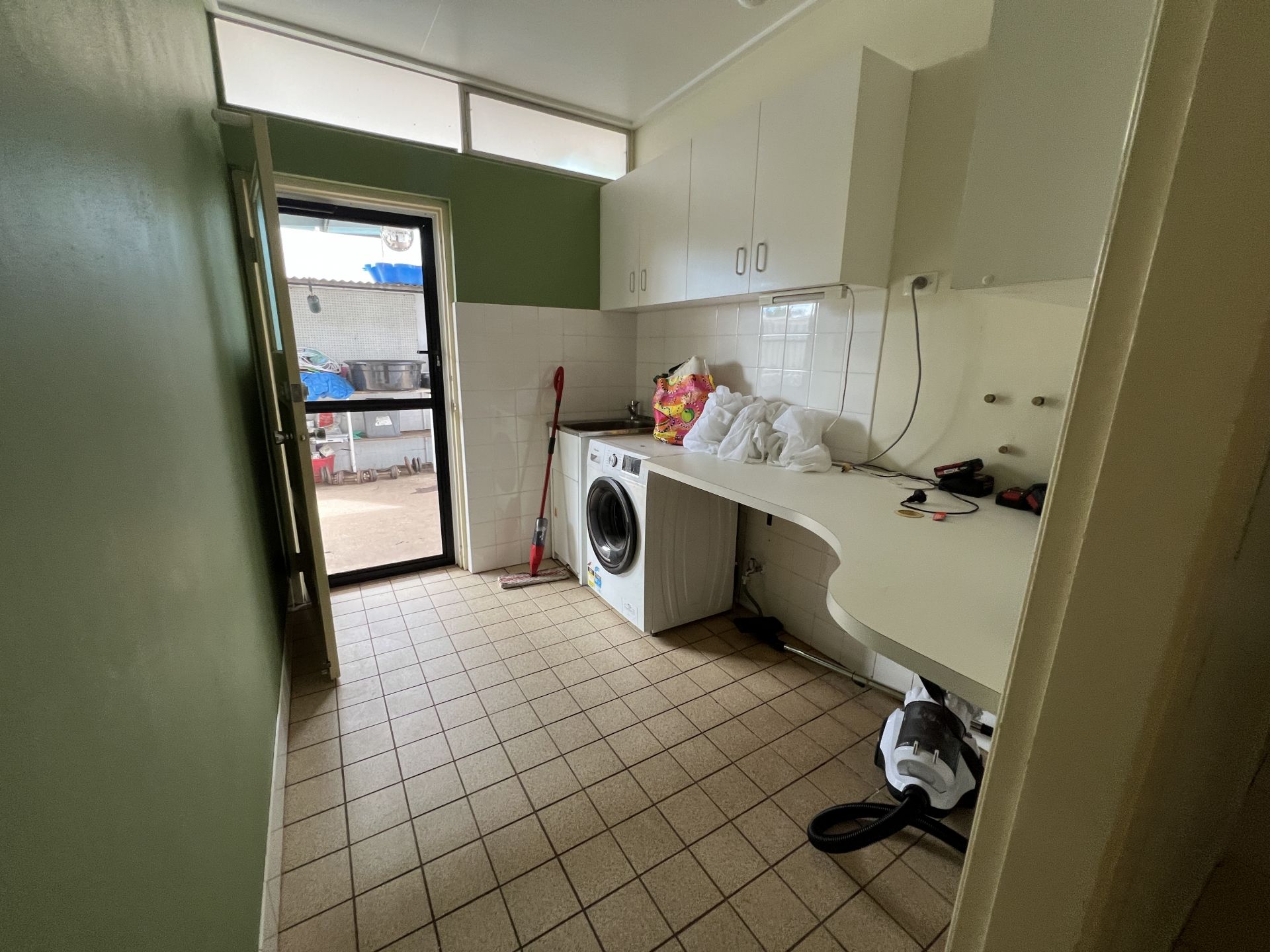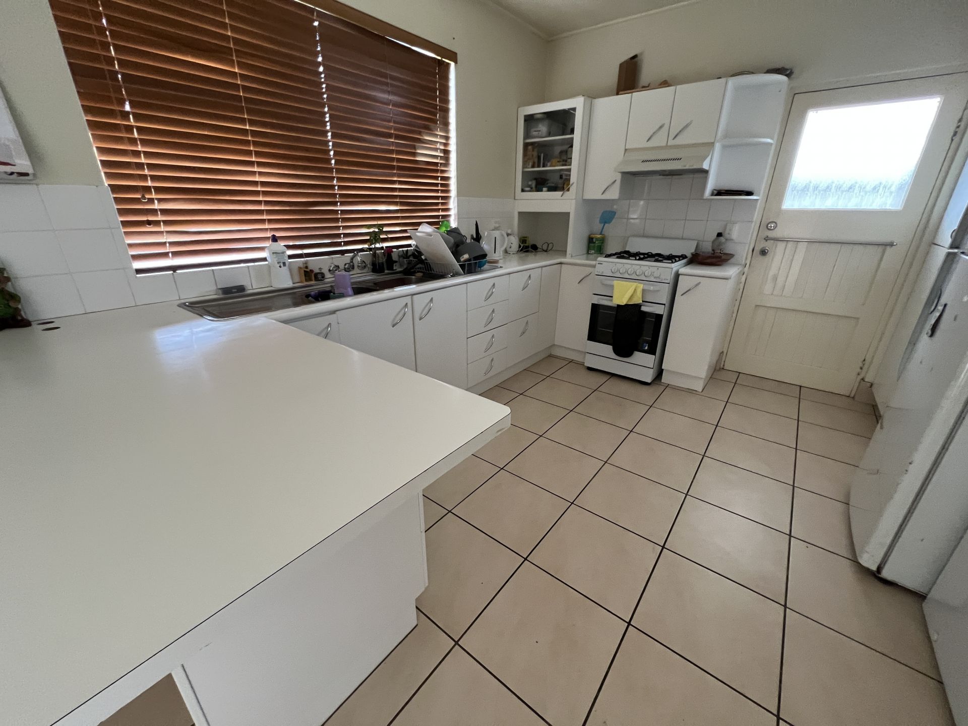 The large laundry is internal and a separate toilet and shower over bath in the large tiled bathroom.